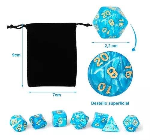 SET DE 7 DADOS POLIÉDRICOS PARA JUEGOS DE ROL