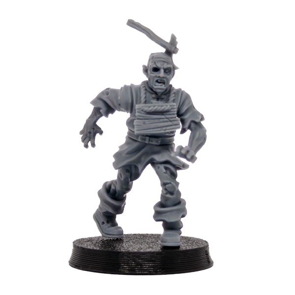La miniatura se entrega impresa en resina color gris, en una sola pieza. Se puede pegar a la base con la Gotita o similar.